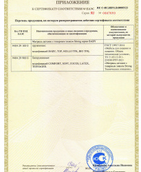 Мы заботимся о стандартах нашей продукции и регулярно проходим сертификацию качества матрасов, кроватей, постельного белья, материалов и тканей (всего 50 сертификатов).